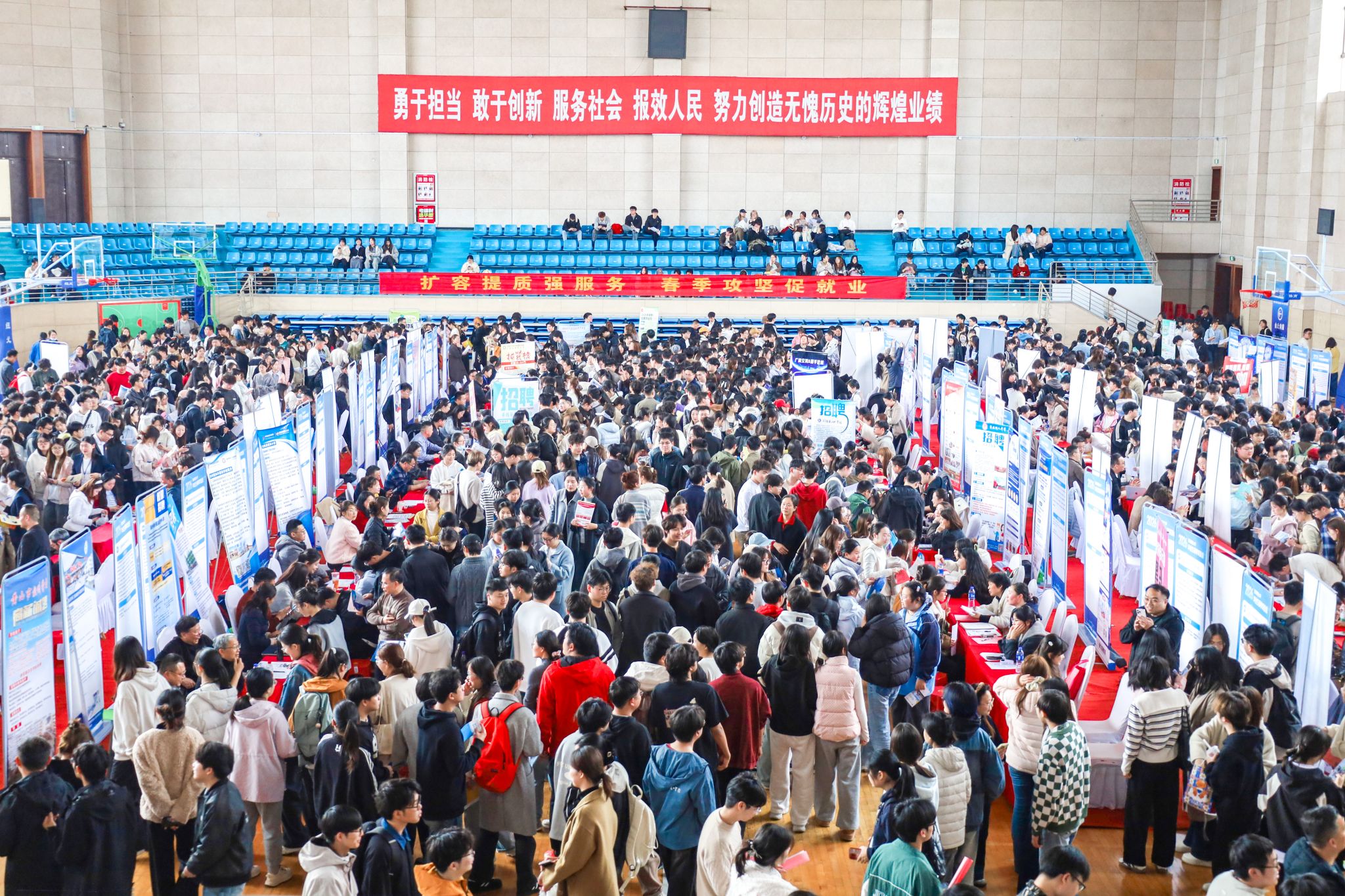 3月25日,学校2026届毕业生春季双选会在龙山校区体育馆举办。此次双选会汇聚了223家用人单位,提供了8000余个就业岗位,吸引了4000余名学子到场求职。