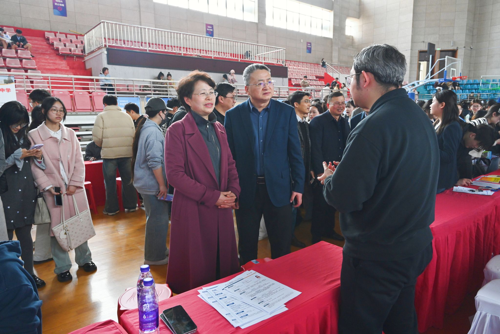 校党委书记李福华,校长彭凤莲,校党委副书记崔明,校党委常委张红飞、计裕人深入现场指导调研,与用人单位深入交流,了解企业人才需求,询问毕业生求职进展,叮嘱学生们客观看待就业形势,找准定位,主动出击,珍惜每一次求职机会。