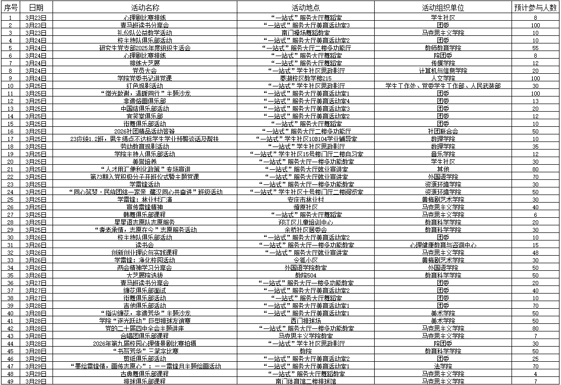下一篇:“一站式”学生社区2025-2026学年第2学期活动安排(第3周)